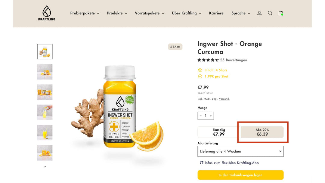 Im Abo sparst Du bei allen Produkten bis zu 20% auf den Originalpreis.
